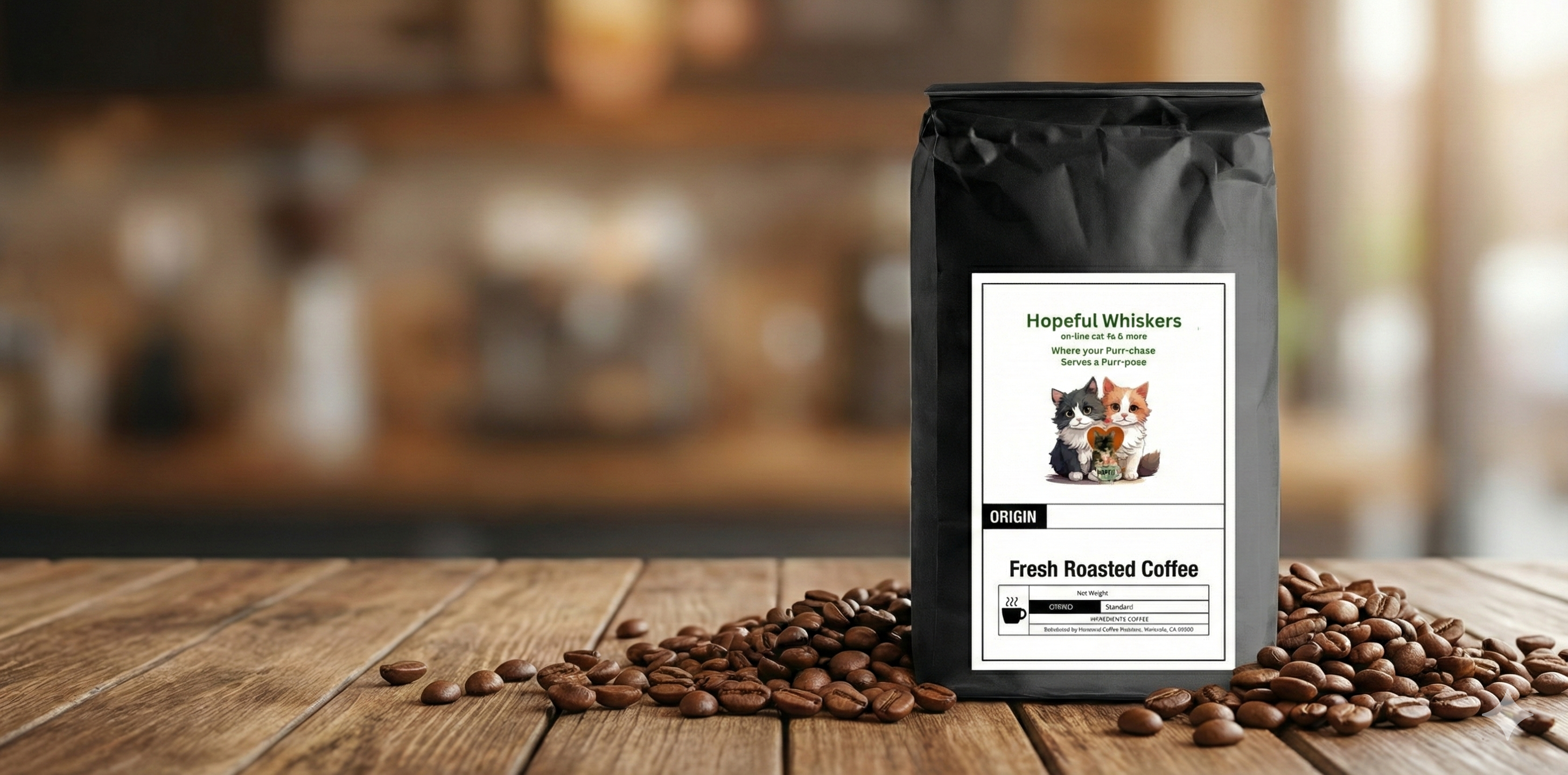 Welcome to Hopeful Whiskers, your neighborhood "on-line cat-fe." We are founded on two simple, non-negotiable passions: exceptional coffee and saving animals.